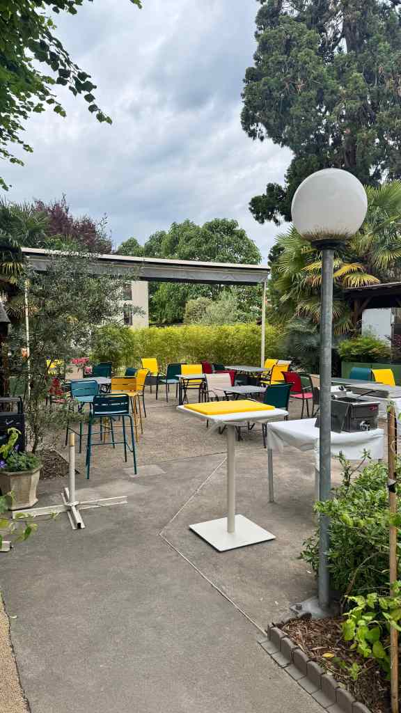 Un peu plus loin, dans le jardin, il me confie aux bons soins de Denis, moniteur de l’atelier espaces verts. Denis me présente ensuite un jeune résident (dont je n’ai malheureusement pas retenu le prénom 😔) qui m’explique avec sérieux l’utilisation de chacun des outils nécessaires à l’entretien du jardin. Je trouve cela touchante, vrai, et rend visible la compétence trop souvent invisibilisée.
